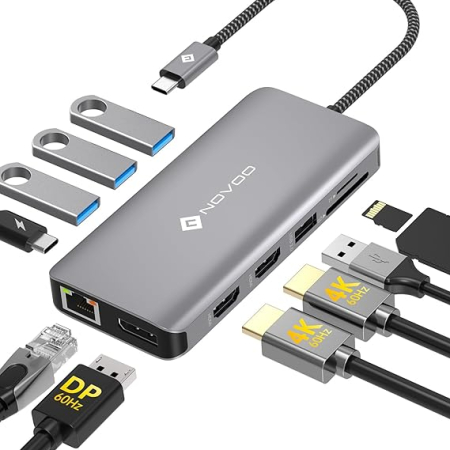 Dodaj do koszykaLPNWE279541820 – Stacja dokująca NOVOO 4K@60Hz USB C Hub, USB C Adapter 2 HDMI Multiport Adapter Laptop Hub USB C z Gigabit Ethernet,8K@30Hz Display Port 100W PD SD/TF 4 USB dla Dell HP Surface Thinkpad – B745