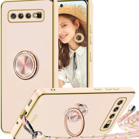 Dodaj do koszykaLPNHE912879335 – Etui telewizyjny do telefonu Samsung Galaxy S10 Plus z uchwytem na sznur i 360-stopniowym pierścieniem, pokrowiec antyshock z miękkiego silikonu TPU, etui ochronne z amortyzującym paskiem na szyję, różowe – C890