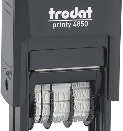 Dodaj do koszykaLPNHE896281858 – Trodat Printy 4850/L2 Datownik z domyślnym tekstem w kolorze czarnym, tekst biurowy „ZAPŁACONO”, 4 taśmy (TT.MMM.RRRR) data na 12 lat, język niemiecki, wysokość czcionki 3,8 mm, wbudowana poduszka tuszująca w kolorze niebiesko-czerwonym – C94