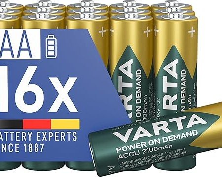 Dodaj do koszykaLPNHE920405143 – Baterie VARTA AA, przeładowalne, 16 sztuk, akumulator, zasilanie na żądanie, 2100 mAh Ni-MH, przedładowane, gotowe do użycia [Wyłącznie w Amazonie] – C182