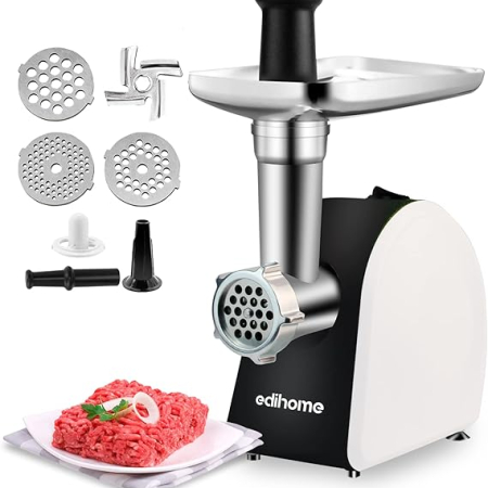 Dodaj do koszykaLPNHE906527891 – Edihome, Elektryczny Rozdrabniacz Mięsa z Tłokiem do Kiełbasek, Profesjonalny Rozdrabniacz Mięsa, 2200W, Wielofunkcyjny z 3 Blachami do Krajania (Czarny/Biały) – C962
