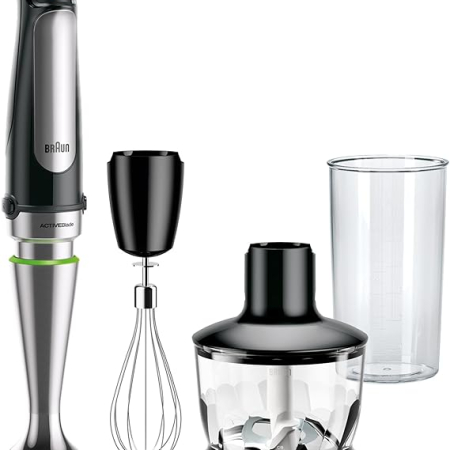 Dodaj do koszykaLPNHE863730491 – Braun MultiQuick 7 – mikser ręczny z technologią SplashControl, systemem ActiveBlade, precyzyjną regulacją prędkości, 500 ml kruszarką, trzepakiem, kubkiem o pojemności 600 ml, 1000W, czarny (MQ7035X) – D32