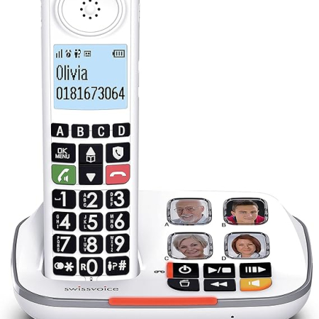 Dodaj do koszykaLPNHE916386011 – SWISSVOICE – Xtra 2355 – DECT – Bezprzewodowy Telefon Stacjonarny – Duże Klawisze – Automatyczna Sekretarka – Audio Boost – Głośne Dzwonki – Kompatybilny z aparatami słuchowymi – Blokada Połączeń – Biały – C569