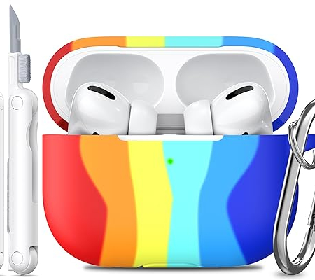 Dodaj do koszykaLPNHE914678358 – Pokrowiec na etui AirPods Pro R-fun z breloczkiem, pełna ochrona silikonowa skóra dodatkowa akcesoria dla kobiet mężczyzn dziewcząt z najnowszym etui AirPods Pro Apple 2019, widoczne przednie diody LED – biały – B585