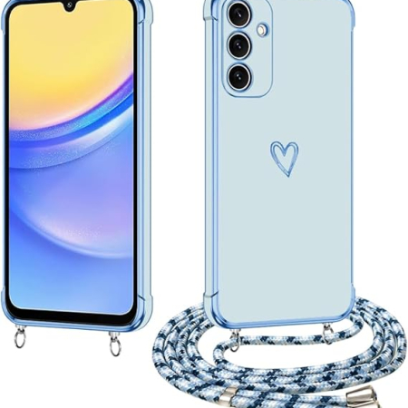Dodaj do koszykaLPNHE918921203 – E-Lush Handykette dla Samsung Galaxy A15 5G Etui z opaską, etui na telefon Samsung A15 z łańcuchem, pokrowiec ochronny w kształcie serca Wzór Love Galwaniczne etui Silikonowa obudowa odporne na uderzenia z sznurkiem do zawieszenia, niebieski – B523