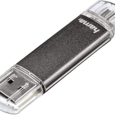 Dodaj do koszykaLPNHK367676621 – Przenośny pendrive Hama 128GB z USB 2.0 i microUSB (dwa w jednym, np. do smartfona z Androidem, tabletu, komputera, laptopa, MacBooka, OTG, przenośny pendrive, dwukrotna pamięć) w kolorze szarym – B615
