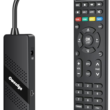 Dodaj do koszykaLPNHE915948836 – Decoder cyfrowej telewizji naziemnej 2025 – Dekoder OWERSLYN DVB-T2, HD 1080P H265 HEVC Main 10 Bit, HDMI CEC TV Stick z obsługą wyjścia HDMI/AV i multimediów USB, funkcja PVR, pilot 2w1 podczerwieni – B691
