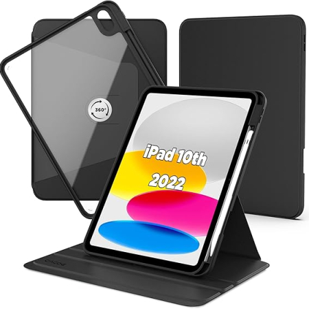 Dodaj do koszykaLPNHE922133603 – Etui CACOE pour iPad 10e génération 10,9 pouces 2022 avec porte-stylo, rotation à 360 degrés, étui de protection avec dos transparent et bordure antichoc en TPU, noir – B638