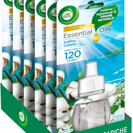 Dodaj do koszykaLPNHE896685285 – Airwick Ricariche per Diffusore Elettrico di Oli Essenziali, Confezione da 6 ricariche di Profumatore per Ambienti alla Fragranza di Soffice Cotone, Profumatore per Ambienti Elettrico – C504