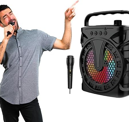 Dodaj do koszykaLPNHE836650444 – Avilia Karaoke Bezprzewodowy głośnik Bluetooth z mikrofonem – Efekt ekologiczny i oświetlenie LED – Potężny dźwięk 8W RMS – przenośny z baterią 500 mAh – głośnik 6” na imprezy i rozrywki – C51