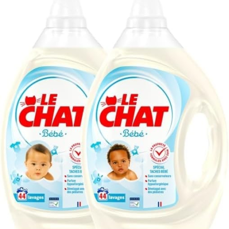 Dodaj do koszykaLPNHE905756099 – LE CHAT – Bébé – Lessive Liquide – La Propreté Formulée avec Soin – Spécial Taches Bébé – Respect des Peaux Sensibles – Parfum Hypoallergénique – Développé avec des Pédiatres – 88 Lavages (2×1,98L) – C451