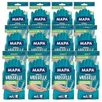 LPNHe030621423 – MAPA – Specjalna zastawa stołowa – Antypoślizgowe rękawice do sprzątania z mieszaniny lateksu i nitrylu – wnętrze z bawełny – szybkie schnięcie – 12 par – rozmiar S/M – K497