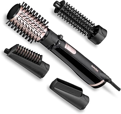 LPNHe038597427 – Okrągła szczotka do suszenia BaByliss z obrotowym powietrzem o mocy 1000 W i 4 końcówkami do suszenia, wygładzania, formowania i dla objętości, technologia jonowa zapewniająca efekt antystatyczny, czarny, AS200E – K621