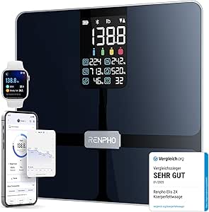 LPNHe041653494 – RENPHO Waga Osobowa z dużym ekranem, ultradokładna waga impedancyjna, inteligentna waga osobowa z aplikacją, połączona waga ITO, czarna, Elis 2X – K451