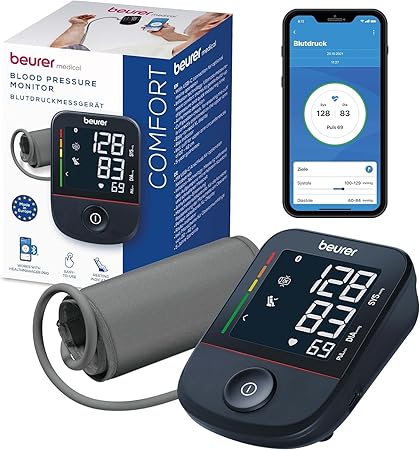 LPNHe045819237 – Beurer BM 48 Ciśnieniomierz na rękę jednoprzyciskowy, delikatny i szybki pomiar, wykrywanie arytmii, duży ekran, z połączeniem do aplikacji, opaska 22-42 cm – K712