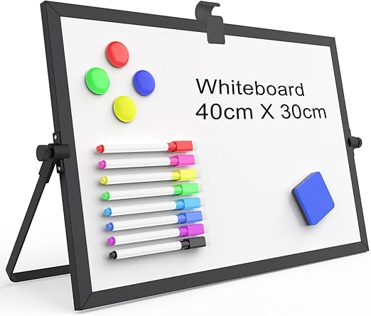 LPNHE835848889 – OWill Biała tablica suchościeralna, 30 x 40 cm, dla dzieci, mała, ze stojakiem, zmywalna, A3, mini tablica suchościeralna, przenośna, dwustronna, biała tablica, do szkoły, domu i biura (czarna) czarny 30 x 40 cm – C62