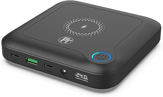 LPNHE847412923 – FeinTech PLG02400 Laptop Powerbank 60 W PD USB-C i DC przyłącze do notebooka, MacBooka, iPada, tabletu, smartfona, aparatu, Nintendo Switch, 10 W, bezprzewodowe ładowanie, 88 Wh, 24000 mAh, 122 x 122 – B962