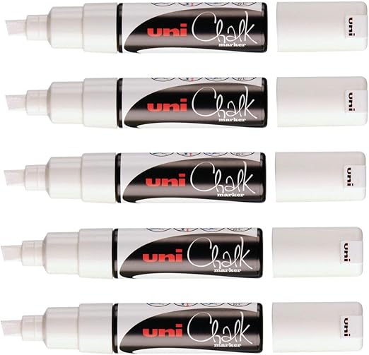LPNHE853852554 – Uni Ball – Uni Mitsubishi Pencil – Marker Chalk kredowy PWE-8K – uniwersalne – odporne na deszcz, idealne szkło lustrzane w tabeli łupkowej – duża końcówka fazowana 8 mm – zestaw 5 – biały 5 Unité (Lot de 1) – C139