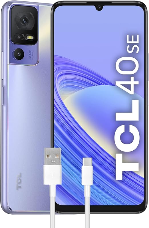 LPNHE865850544 – Smartfon TCL 40SE 4G Ekran 6,75” HD+ 90 Hz, 128 GB, 4 GB pamięci RAM, potrójny aparat 50 Mpx, Android 13, bateria 5010 mAh szybkie ładowanie, Dual Sim, ciemnoszary, z dodatkowym kablem USB typu C – A247