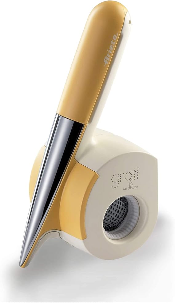 LPNHE895544781 – Ariete 457 Gratì Waterproof, Wodoodporne elektryczne tarcie do sera, czekolady i orzechów, Bezprzewodowe, Zmywalne, 2 wałki ze stali nierdzewnej, biały i żółty – C968
