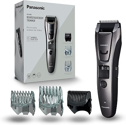 LPNHE895792306 – Panasonic ER-GB80-H503 Trimmer do brody, Maszynka do strzyżenia mężczyzn, Przenośna maszynka do strzyżenia bezprzewodowa wodoodporna, 39 ustawień długości, 3 akcesoria, praca na baterii i na kablu, ciemny srebrny – C210