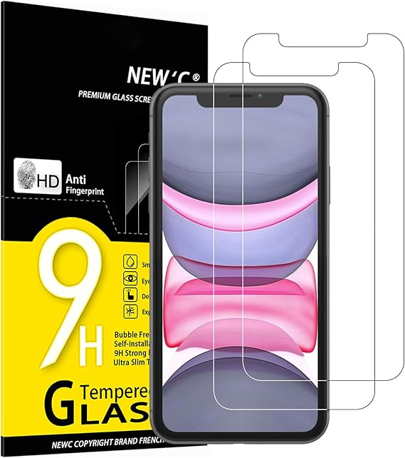 LPNHE896046500 – NEW’C Zestaw 2 szkła hartowanego do iPhone 11 i iPhone XR, folia ochronna ekranu – Bez pęcherzyków powietrza – Bardzo odporny (0,33 mm HD Ultra Transparent) Twardość 9H Glass – B948