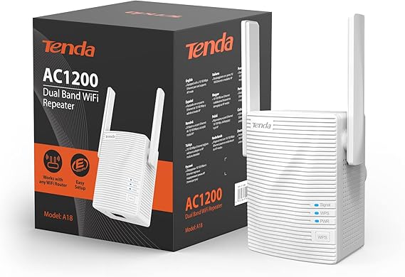 LPNHE896709460 – Tenda A18 Repeater Wifi Wireless, Prędkość Dual Band AC1200 1200Mbps, Wifi Extender i Access Point, Port LAN, Port Fast Ethernet, Podwójne Anteny, Biały – B521