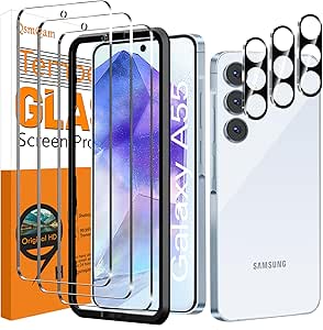 LPNHE897760050 – Zestaw 3 sztuk szkła hartowanego do Samsung Galaxy A55 5G i 3 sztuk ochronnika tylnego aparatu fotograficznego, folia ochronna na ekran, twardość 9H, odporność na zadrapania, ochronna szyba do Samsung Galaxy A55 5G – C68