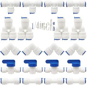 LPNHE898697483 – CESFONJER Złączka do filtra wody RO, 1/10.2 cm Pushfit proste złącze do rury wodnej, zestaw 20 szt. (Y+T+I+L Combo + zawór odcinający) – D16
