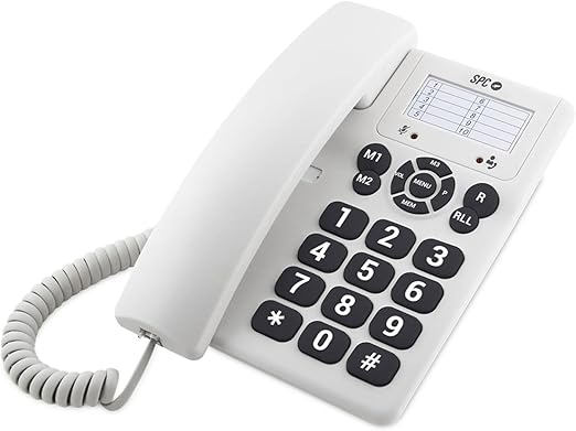 LPNHE901541713 – SPC Original – Stacjonarny lub ścienne telefon przewodowy, z dużymi klawiszami i łatwy w użyciu, 3 numery szybkiego wybierania, dodatkowo głośność dzwonka, funkcja ponownego wybierania – Biały. – C38
