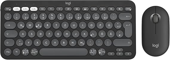 LPNHE902680967 – Logitech Pebble 2 Combo, bezprzewodowa klawiatura i mysz, cicha i przenośna, dostosowana, Logi Bolt, Bluetooth, Easy-Switch dla systemów Windows, macOS, iPadOS, Chrome, niemiecki układ klawiatury QWERTZ, grafit – B209