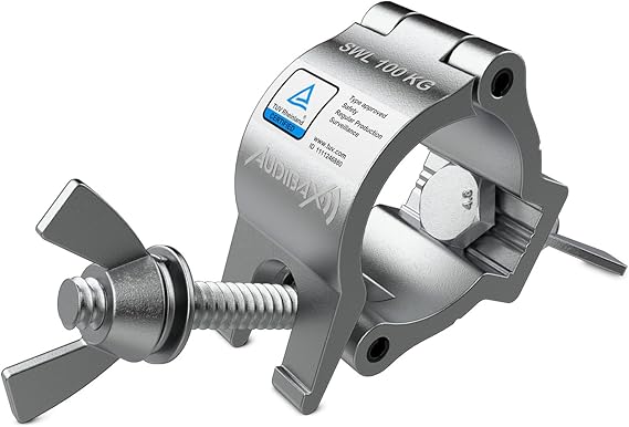 LPNHE905503884 – Audibax ACP-4852100S – Zatrzask mocowania o średnicy 48 do 52 mm – Haczyk mocujący z maksymalnym obciążeniem 100 kg – Uchwyt do oświetlenia scenicznego – Uchwyt do mocowania głowicy ruchomej – A933