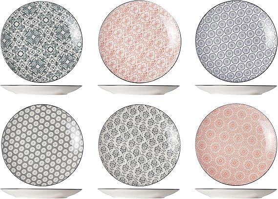 LPNHE908987781 – Urocze i trendy talerz Assiette Plate Délirio 6 w różnych wzorach – Ø 23,5 cm – zestaw 6 sztuk – E151