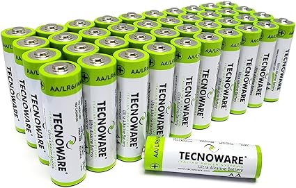 LPNHE909628589 – Tecnoware Power Systems – Baterie alkaliczne AA Ultra Alkaline | Długotrwała energia do zabawek, pilotów, latarki, zegarków | Zestaw 40 sztuk | Recyklingowe opakowanie, białe – B333