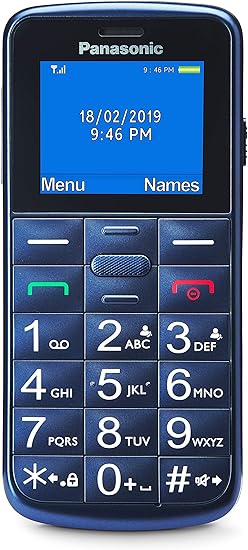 LPNHE912466145 – Panasonic KX-TU110EXC – Telefon Komórkowy dla osób starszych, 1,77 cala (160 x 128), duży ekran i klawisze, przycisk SOS, odporny na wstrząsy, latarka, bateria 22 godziny, niebieski, 11,4 x 5,1 x 1,3 cm – A978