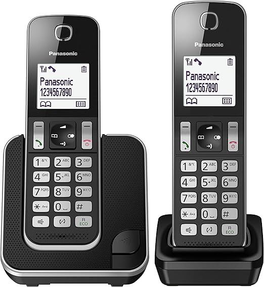 LPNHE912670708 – Telefon bezprzewodowy cyfrowy Panasonic KX-TGD312JTB, jednostka bazowa i 2 odbiorniki, biały wyświetlacz LCD, głośnomówiący, identyfikator rozmówcy, blokada niechcianych połączeń, tryb Eco Plus, DECT, czarny. – B202