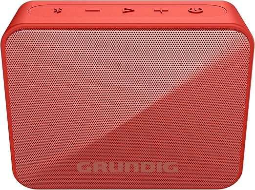 LPNHE913776148 – GRUNDIG Solo + Czerwony głośnik Bluetooth, Soundbox, moc 3,5 W RMS, zasięg 30 metrów, ponad 20 godzin czasu gry, Bluetooth 5.3, obudowa odporna na ochlapywanie (IPX5), czarny – B342
