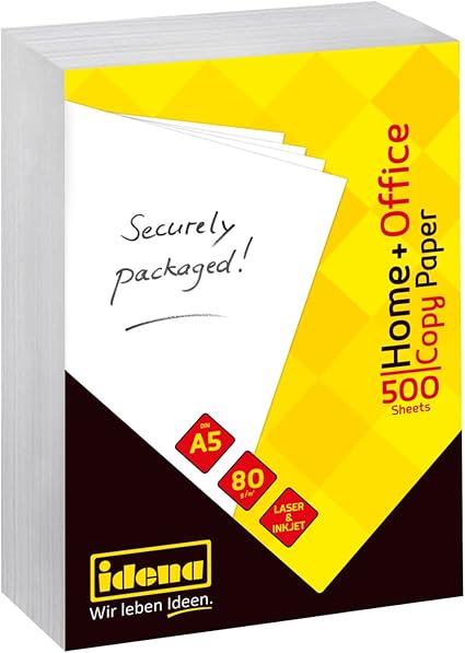 LPNHE914363897 – Idena 10547 – Papier do kopiowania, format DIN A5, 500 arkuszy, kolor biały, jakość papieru 80 g/m², idealny do codziennego użytku, do drukowania, kopiowania i wysyłania faksów, odpowiedni do drukarek laserowych i atramentowych. – A828