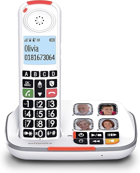 LPNHE916386011 – SWISSVOICE – Xtra 2355 – DECT – Bezprzewodowy Telefon Stacjonarny – Duże Klawisze – Automatyczna Sekretarka – Audio Boost – Głośne Dzwonki – Kompatybilny z aparatami słuchowymi – Blokada Połączeń – Biały – C569
