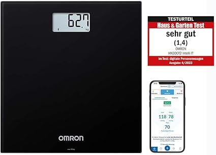 LPNHE916451149 – OMRON HN300T2 Intelli IT – inteligentna, cyfrowa waga osobowa do domu, waga do ciała z połączeniem Bluetooth z aplikacją na smartfon czarny – C259