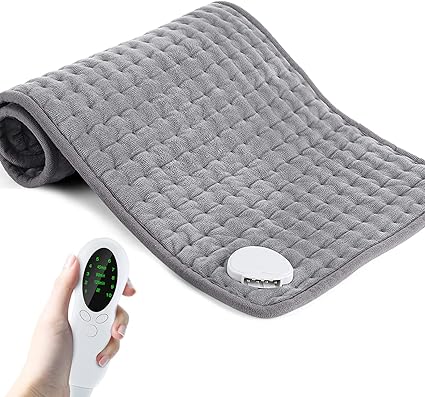 LPNHE916571660 – Podgrzewana poduszka, Elektryczna poduszka grzewcza do złagodzenia bólu, 10 ustawień temperatury i 3 ustawienia czasu z wyświetlaczem LCD, 100% miękka, 12 „x24 (30x60cm, Szara) – C409