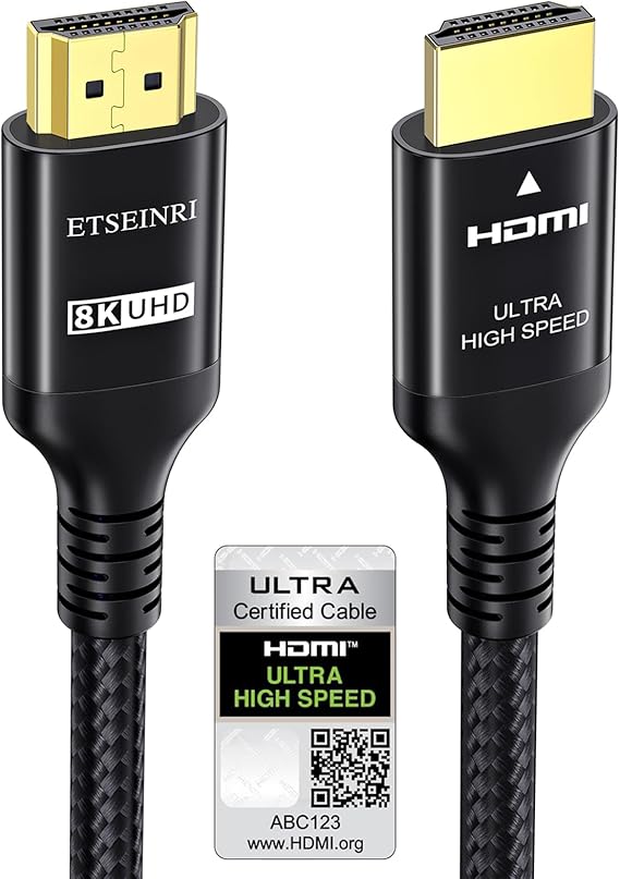 LPNHE917969360 – Kabel HDMI 2.1 Etseinri 10K 8K o długości 1,5M, Certyfikowany kabel Ultra High Speed HDMI® 48Gbps obsługujący rozdzielczość 4K 240Hz 165Hz 144Hz 120Hz 8K 60Hz 4:4:4 DTS:X eARC HDCP2.3 HDR10+ do monitora TV projektorów gier na PC PS5 Xbox – B30