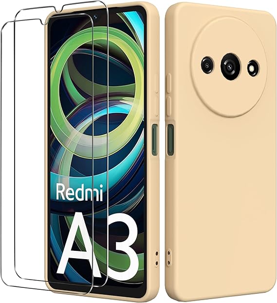 LPNHE918096204 – Zespół ofertowy Etui do Xiaomi Redmi A3 4G (6.71″) z 2 szkła hartowane ochrona ekranu, Pokrowiec Redmi A3 Silikonowy płynny TPU Ultra Premium Antishock Etui na Xiaomi Redmi A3 4G – Czarny – C92