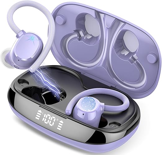 LPNHE919468859 – Słuchawki sportowe Tukio Bluetooth, bezprzewodowe Bluetooth 5.3, 80 godzin odtwarzania z głębokimi basami, douszne słuchawki z 4 mikrofonami redukcji hałasu ENC, wodoodporne słuchawki IP7 z haczykami na uszy, niebieskie. – B470