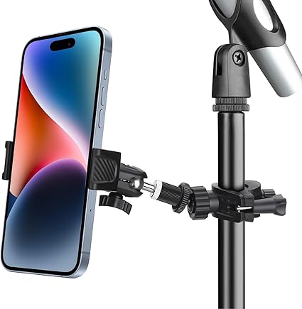 LPNHE919492895 – Uchwyt na telefon JYCSTE do statywu mikrofonowego, regulowany uchwyt na statyw muzyczny do telefonów komórkowych, obrotowy uchwyt na telefon, kompatybilny z wszystkimi iPhone’ami, smartfonami z systemem Android (Podstawka na telefon) – B234