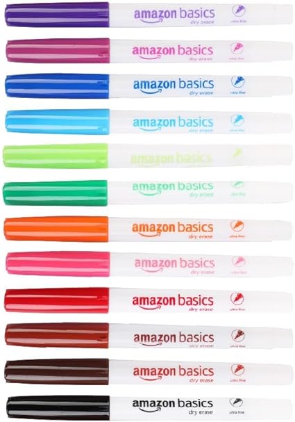 LPNHE919691015 – Amazon Basics flamasterek do tablicy suchoszczelny, o ultra cienkim czubku, do suchego ścierania, kolorowy, 12 sztuk. – B995