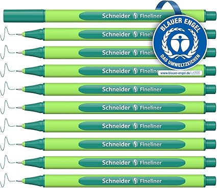 LPNHE919924945 – Zestaw piórników Schneider Line-Up (grubość linii 0,4 mm, wykonanych z bioplastiku, nagrodzony Niebieskim Aniołem), 10 sztuk, w kolorze nautic-green – C694