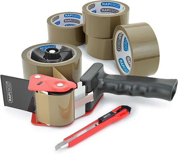 LPNHE919987668 – Rapesco 1581 Dystrybutor taśmy klejącej do pakowania 960 Germ-Savvy z antybakteryjnymi właściwościami z 5 rolkami brązowej taśmy – A955