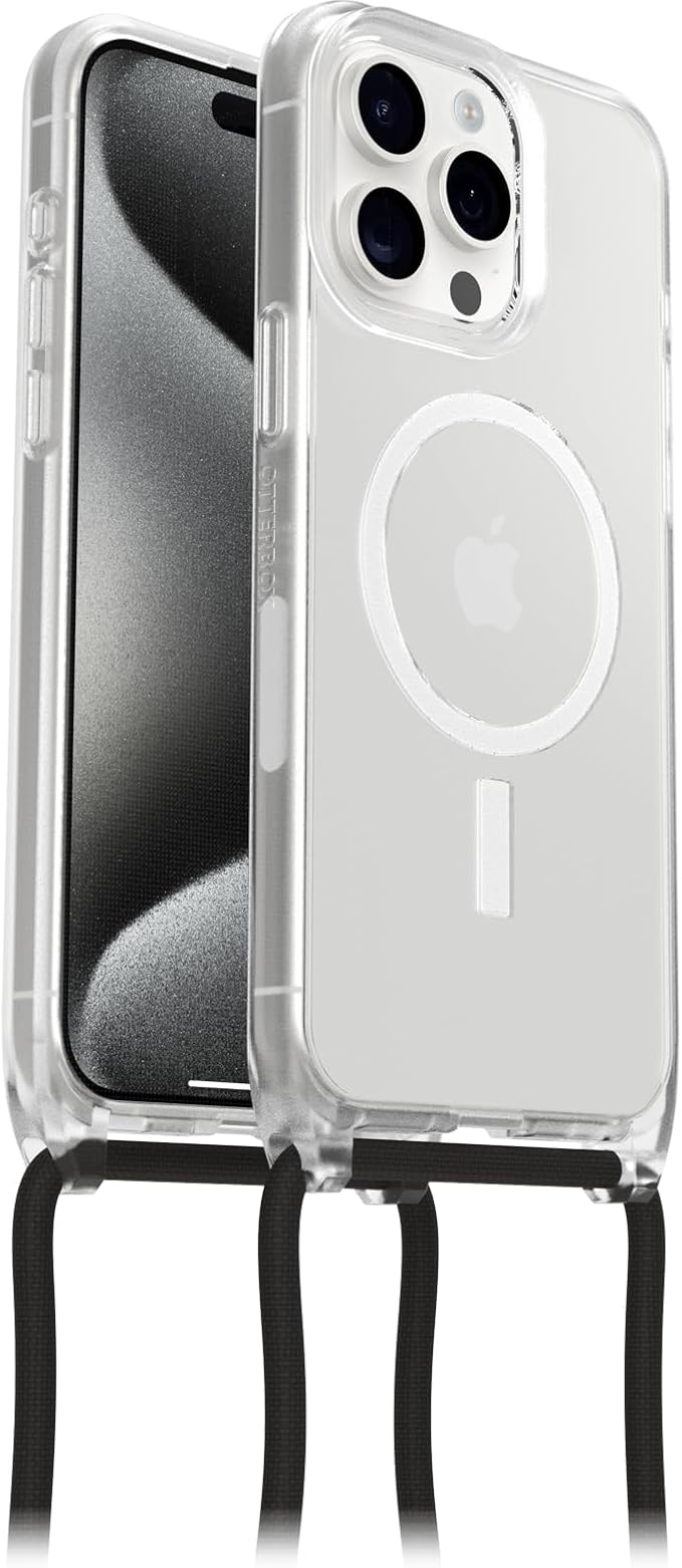 LPNHE920119088 – Etui OtterBox React Necklace z MagSafe do iPhone 15 Pro Max, ultra cienka ochronna obudowa z regulowanym i zdejmowanym łańcuszkiem na telefon, testowana zgodnie ze standardami wojskowymi, transparentna – B382