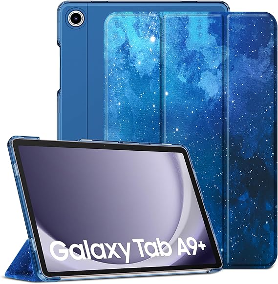 LPNHE921335389 – Obudowa CACOE zgodna z Samsung Galaxy Tab A9 Plus / A9 + 11 cali 2023, ultra cienka matowa przezroczysta tylka z funkcją podparcia dla SM-X210 / X215 / X216 2023 – niebieskie gwiazdy – A963